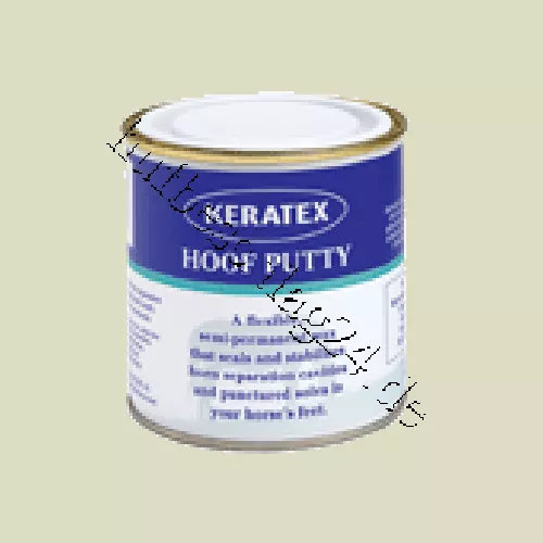 Keratex Hoof Putty dichtet und imprägniert Horn- Trennung und Hohlräume. Verhindert Keime, Kompromisse und Hufprobleme. Selbstklebend, flexible und wird nicht herausfallen.Stabilisiert Huf Hohlräume, Erkrankung der weißen Linie und andere Huf Bedingungen, die im Horn eine Trennung verursachen. Verhindert Sand und Steine vom Betreten des Hufes.------Eine besondere wachshaltige Art mit langsamer Freisetzung organischer Desinfektionsmitteln und Antibiotika. Verwenden um Hohlräume durch Leiden wie Sohlen- Abszesse zu füllen. Das breite Spektrum organischer Desinfektionsmittel in Keratex Hoof Putty sind wirksam bei der Behandlung sowohl auch durch Pilz-und bakterielle Problemen.------Wird in 200g Dosen verkauft------Beginnen Sie mit einem sauberen, trockenen Huf. Waschen und trocknen Sie die Hände. Arbeiten sie ein Stück Keratex Hoof Putty in Ihren Händen bis sie weich und klebrig wird. Drücken Sie dieses Stück Kitt in den Hohlraum. Wiederholen, bis der Hohlraum gefüllt ist, und auf gleicher Höhe mit Kitt umgebenden Horn oder Sohle ist. Wenn Beschlagen wird über oder in der Nähe von Gebieten die mit Hoof Putty gefüllt sind ist es wichtig, dass nur kalter Hufbeschlag oder Kleben verwendet wird. Wo Hoof Kitt unter einem Schuh angewendet wurde, muss es bei dem nächsten Hufbeschlag ersetzt werden. In allen anderen Fällen wöchentlich prüfen und ggf. austauschen.------Einmal eingesetzt, härtet Keratex Hoof Putty in seinen früheren Zustand, der eine gute Abdichtung gegen Wasser und Schmutz bildet und kann entweder auf beschlagen oder unbeschlagenen Hufen verwendet werden.