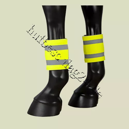 Sicherheit im Dunkeln------PFIFF Refelxionsband breit für das Pferdebein mit strapazierfähigem Klettverschluss---Material: 100 % PVC (Polyvinylchlorid)---Breite: ca. 11,5 cm------Farbe: gelb
